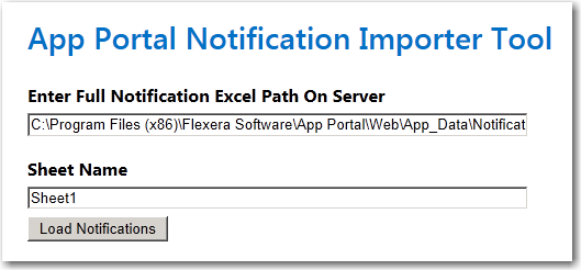 - The App Portal Notification Importer Tool page opens: