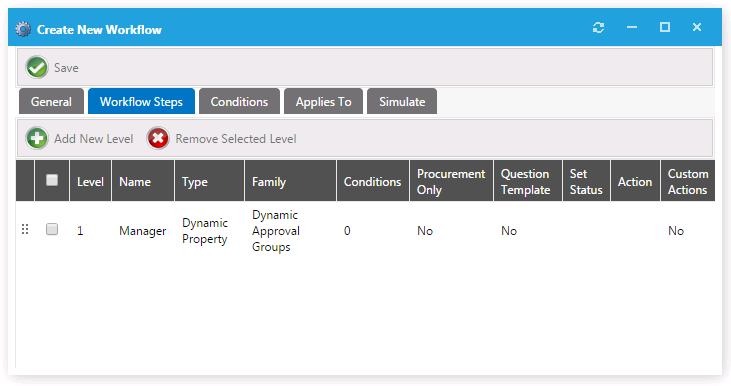 - Click Save . The new approval workflow is now listed on the Workflows View .
