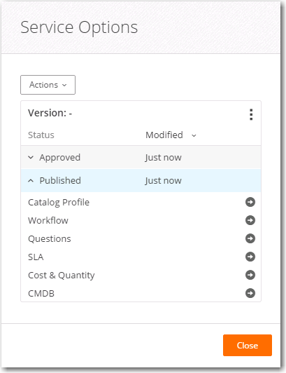 - From the Actions menu, select Approve & Publish . The Status for Approved and Published is updated to Just now .