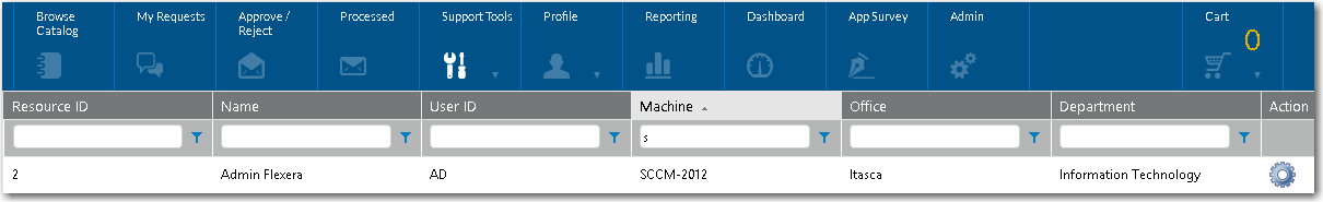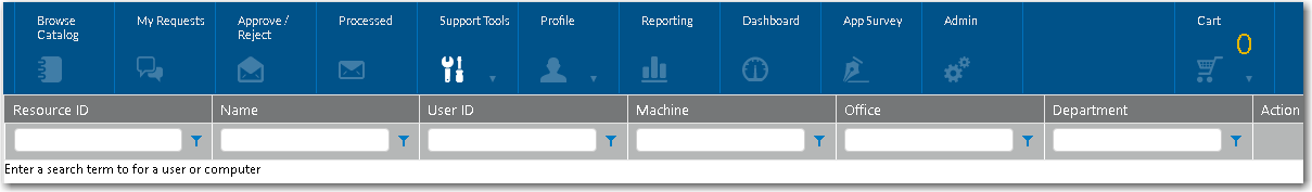 - Enter search terms in the filter boxes to locate a user or computer. Matching resources are listed.