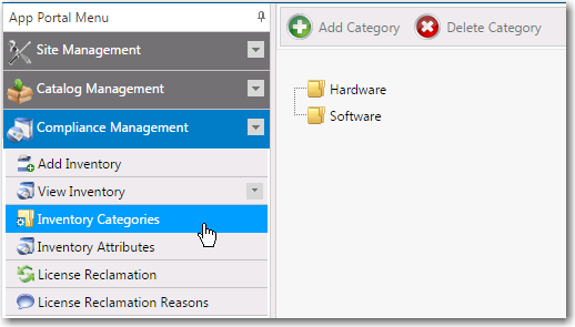 - On the Admin tab, select Compliance Management > Inventory Categories .