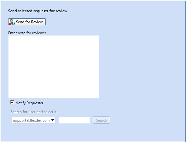 • The requester or the selected user will then receive an email with the text of the note, and a link to review the submitted request.
